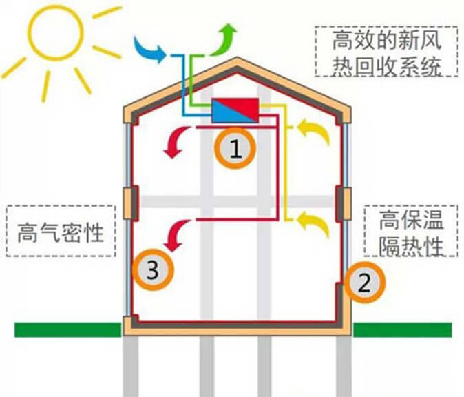 被动式房屋是采用各种节能技术构造使其供热(制冷)需求极少的能量,不再利用传统的供热(制冷)方式,充分利用室内生活热量,通过高隔热隔音、密封性强的建筑外墙和可再生能源,实现舒适的居住环境,是能量效益最佳房屋。